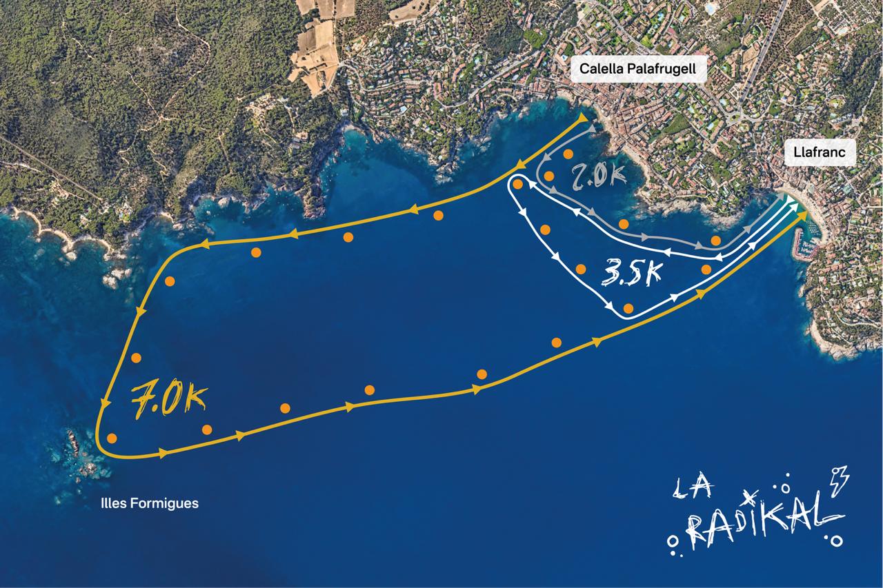 La Radikal 7.0 és excepcional. 7K per recordar. L'objectiu: Conquerir les Illes Formigues i arribar a Llafranc. L'aventura començarà el dissabte 10 a les 9:00 a la mítica Platja de Port Bo (Calella de Palafrugell). Allà donarem la sortida en mode mass start i nedarem 2.5K a prop de la costa fins arribar a Cap de Planes. Un cop allà, iniciarem l'assalt a les Formigues nedant 1K mar endins i després seguirem amb 3.5K més de mar obert fins a completar el repte arribant a Llafranc. Podràs fer teu l'Assalt a les Illes Formigues amb totes les mesures de seguretat per a que gaudeixis de aigües obertes en estat pur! Una gran quantitat de boies amb globus d'heli marquen el recorregut de la travessia, en la que estareu acompanyats de més de 30 kayacs, 20 embarcacions i Radikal Angel Swimmers que us seguiran durant tot el recorregut.